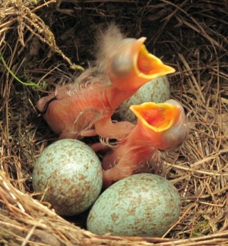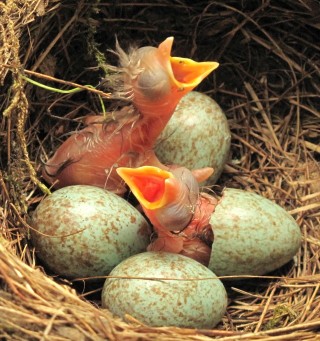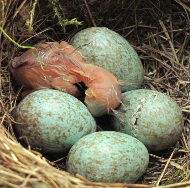 Jetzt sind schon 4 von 5 neuen Amselküken geschlüpft (Stand 18.05.2015).